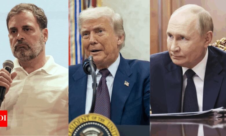 राहुल गांधी (बाएं), डोनाल्ड ट्रम्प, व्लादिमीर पुतिन (एजेंसियां)