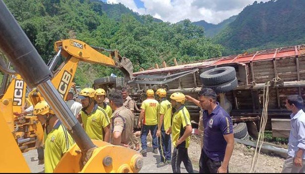 टिहरी। उत्तराखंड के टिहरी जनपद में ऋषिकेश-गंगोत्री हाईवे पर जाजल और फकोट के बीच दर्दनाक हादसा हो गया। कांवड़ यात्रियों से भरा एक ट्रक अनियंत्रित होकर सड़क पर पलट गया, जिसमें एक श्रद्धालु की मौके पर ही मौत हो गई, जबकि अन्य कई घायल हो गए।