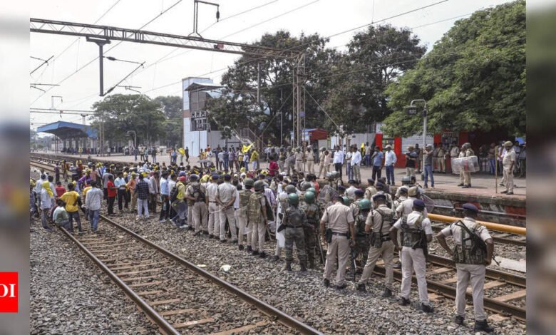 रांची: एक 61 वर्षीय महिला, जो अपनी बीमार बेटी से मिलने के लिए पुणे की यात्रा कर रही थी, शारखंड के पूर्वी सिंहभुम जिले के घाटशिला स्टेशन में सैकड़ों फंसे यात्रियों में से शनिवार को हावड़ा-पुन डुरोंटो एक्सप्रेस के रूप में कुर्मी समुदाय के सदस्यों द्वारा रेल नाकाबंदी के कारण रुक गई थी।निषेधात्मक आदेशों को धता बताते हुए, प्रदर्शनकारी अनुसूचित जनजाति (एसटी) श्रेणी में कुर्मी समुदाय को शामिल करने की मांग करने के लिए झारखंड के विभिन्न स्टेशनों पर रेल अवरोधों का मंचन कर रहे हैं।“मेरी बेटी, जो पुणे में काम करती है, अस्वस्थ है। मुझे किसी भी तरह से वहां पहुँचना है क्योंकि उसके दो बच्चे पीड़ित हैं। रेलवे अधिकारी सिर्फ ट्रेन के आंदोलनों के बारे में आश्वासन दे रहे हैं, लेकिन कोई जानकारी नहीं है कि यह कब शुरू होगा,” फंसे हुए यात्री ने कहा।घोष ने कहा कि वह राज्य में किसी भी विरोध प्रदर्शन से अनजान थी।उन्होंने कहा, “मैं प्रदर्शनकारियों से अनुरोध करता हूं कि कृपया ट्रेन को जाने दें ताकि मैं पुणे पहुंच सकूं और अपनी बेटी और उसके बच्चों की देखभाल कर सकूं,” उन्होंने कहा।एक अन्य महिला, शिलाजा सिंह (56) ने कहा कि वह अपने पोते से मिलने जाने के लिए रायपुर जा रही थी, जिसे अस्पताल में भर्ती कराया गया था।बिहार में भागलपुर के निवासी सिंह ने भागलपुर और रायपुर के बीच प्रत्यक्ष रेल कनेक्टिविटी की कमी के कारण कोलकाता से ट्रेन में सवार हो गए थे।“हम केवल पीड़ित नहीं हैं,” उसने कहा, “हजारों यात्री इस विरोध के कारण अलग -अलग स्टेशनों पर फंसे हुए हैं।”प्रदर्शनकारियों को रांची में मुरी और राय स्टेशनों पर ट्रेन के आंदोलनों को अवरुद्ध करने वाले ट्रैक पर बैठे हुए देखा गया, पूर्वी सिंहभम में घातशिला, गिरिदिह में परसनाथ और बोकारो जिले में चंद्रपुरा आदिवासी कुरमी समाज (अक्स) के बैनर के तहत।रांची के मुरी स्टेशन पर, टाटा-पत्ना वंदे भारत एक्सप्रेस को रद्द करने से पहले घंटों तक फंसे हुए थे।चालीस वर्षीय समीर दास, रविवार को ‘पितु टारपान’ अनुष्ठान करने के लिए गेजी के लिए मार्ग, मुरी स्टेशन पर फंस गए थे।दास ने कहा कि उन्होंने गायजी में एक होटल बुक करने सहित सभी व्यवस्थाएं कीं।उन्होंने कहा, “ट्रेन सुबह 7.15 बजे के आसपास मुरी स्टेशन पर पहुंची। तब से, यह विरोध के कारण फंसे हुए हैं। मैं अब कैच -22 की स्थिति में हूं क्योंकि ट्रेन रद्द कर दी गई है,” उन्होंने कहा।ट्रेन के कई यात्रियों ने स्टेशन पर एक हंगामा किया, क्योंकि यह घोषणा की गई थी कि ट्रेन रद्द कर दी गई थी।एक सेवानिवृत्त दूरसंचार कर्मचारी, बिपिन बिहारी द्विवेदी (65) ने अपनी निराशा व्यक्त की।उन्होंने कहा, “हमारे पास इतने बड़े पैमाने पर विरोध के बारे में कोई पूर्व जानकारी नहीं थी। अगर र