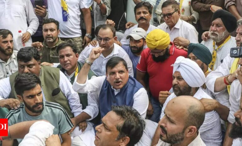 JAMMU/SRINAGAR: J & K सार्वजनिक सुरक्षा अधिनियम (PSA) के तहत डोडा, मेहराज मलिक से AAP विधायक की हिरासत में बढ़त पर बने हुए हैं। जबकि गुरुवार की सुबह एक कम तीव्रता वाले विस्फोट ने जम्मू के डोडा शहर में घबराहट पैदा कर दी, जो पहले से ही तनावग्रस्त है, श्रीनगर में उच्च नाटक का खुलासा हुआ जब पुलिस ने एएपी के राज्यसभा सदस्य संजय सिंह को मालिक के हिरासत के खिलाफ विरोध करने से रोकने के लिए सर्किट हाउस के गेट्स को बंद कर दिया, और एनसी के राष्ट्रपति फारूक को उससे मिलने की अनुमति दी।सिंह, जो बुधवार शाम को अन्य AAP पदाधिकारियों के साथ श्रीनगर पहुंचे थे, को एक प्रेस कॉन्फ्रेंस और लाल चौक में एक विरोध प्रदर्शन करने के लिए निर्धारित किया गया था। हालांकि, पुलिस ने सर्किट हाउस के द्वार को बंद कर दिया और उसे और अन्य लोगों को बाहर निकलने से रोक दिया।नेकां के अध्यक्ष फारूक अब्दुल्ला, जो सिंह को समर्थन देने के लिए पहुंचे, को मुख्य द्वार पर रोक दिया गया। AAP सांसद एक प्लास्टिक की कुर्सी पर चढ़ गया और उसके साथ बातचीत करने की कोशिश की। यह आरोप लगाते हुए कि उन्हें “हाउस अरेस्ट” के तहत रखा गया था, सिंह ने कहा कि सरकार के गेस्टहाउस को “पुलिस शिविर” में बदल दिया गया था और अधिकारियों ने उसे अंदर से भ्रमित करने के लिए मैदान का खुलासा करने से इनकार कर दिया।दोनों नेताओं ने सुरक्षा कर्मियों के साथ तर्क दिया कि वे उन्हें मिलने की अनुमति न दें, और एलजी मनोज सिन्हा में बाहर निकल गए, उस पर अपने अधिकार का गाली देने का आरोप लगाया। एक परेशान फारूक ने कहा कि “एक निर्वाचित सरकार जम्मू -कश्मीर में सत्ता में है, लेकिन एलजी एक राजा बन गया है”।नेकां नेता ने आखिरकार गेट के बाहर से सिंह को “खुदा हाफ़िज़” की बोली लगाई। AAP सांसद ने बाद में X पर वीडियो क्लिप साझा की और कहा: “यदि यह तानाशाही नहीं है, तो यह क्या है?”सीएम उमर अब्दुल्ला ने भी इसे “अवैध निरोध” कहा और एलजी प्रशासन के “उच्चतरता” को पटक दिया। उन्होंने कहा, “वे दावा करते हैं कि जे एंड के में सब कुछ ठीक है; कि माहौल अच्छा है, लोग खुश हैं, और ‘नाया कश्मीर’ उभर रहे हैं। वास्तविकता यह है कि वे उपयोग बल के अलावा कुछ भी नहीं करते हैं,” उन्होंने संवाददाताओं से बात करते हुए कहा। “उन्होंने हमारे खिलाफ बल का इस्तेमाल किया है, मेहराज मलिक को गिरफ्तार करने के लिए गलत कानूनों का आह्वान किया है … और अब उन्होंने अवैध रूप से एक राज्यसभा सदस्य को हिरासत में लिया है। किस कानून के तहत? क्या उन्होंने उसे कोई नोटिस दिया? यह J & K के लोकतंत्र के लिए अच्छा नहीं है और यह गलत संदेश भेजता है, ”उमर ने कहा।अधिकारियों ने कहा कि इससे पहले पैनिक ने डोडा टाउन के डुमरी-थुकर मोहल्ला में एक घर में विस्फोट के बाद स्थानीय लोगों को पकड़ लिया था, हाला