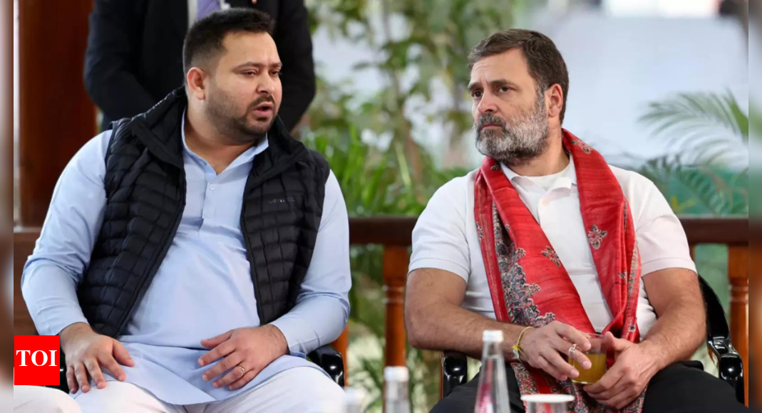 नई दिल्ली: Rashtriya Janata Dal नेता तेजशवी यादव ने मंगलवार को दावा किया कि बिहार विधानसभा चुनाव से पहले महागथदानन गठबंधन में मुख्यमंत्री के चेहरे के बारे में “कोई भ्रम नहीं” था।तेजस्वी ने कहा कि अपने “बिहार अदिकर यात्रा” को मारते हुए, तेजशवी ने कहा कि सही समय आने पर विपक्ष अपने सीएम चेहरे की घोषणा करेगा।आरजेडी नेता ने कहा, “हमारे गठबंधन में कोई भ्रम नहीं है। लोग बिहार के मालिक हैं और वे मुख्यमंत्री बनाते हैं। इस बार, वे एक बदलाव चाहते हैं। जाएं और बिहार में किसी भी व्यक्ति से पूछें, जिसे वे (मुख्यमंत्री के रूप में) देखना चाहते हैं, इसका जवाब प्राप्त होगा,” आरजेडी नेता ने कहा।उन्होंने कहा, “लेकिन हमारे गठबंधन में मुख्यमंत्री के चेहरे के बारे में कोई भ्रम नहीं है, और समय आने पर इसकी घोषणा की जाएगी।”इससे पहले, पूर्व उप -मुख्यमंत्री ने राज्य के लोगों से अपील की और कहा कि उन्हें उनके नाम पर सभी 243 निर्वाचन क्षेत्रों में मतदान करना चाहिए।“इस बार, तेजशवी सभी 243 सीटों पर चुनाव लड़ेंगे। चाहे वह बोचहान हो या मुजफ्फरपुर, तेजशवी लड़ेंगे। आप सभी के लिए मेरी अपील मेरे नाम पर वोट करने की है। तेजशवी बिहार को आगे ले जाने की दिशा में काम करेंगे … हम सभी को एक साथ काम करना चाहिए और इस सरकार को अनसुना करना चाहिए।”“मतदाता अधीकर यात्रा” के दौरान, तेजशवी ने खुद को विपक्षी भारत ब्लॉक का सीएम चेहरा घोषित किया था।Ara Town में रैली को संबोधित करते हुए, ‘मतदाता अधीकर यात्रा’ के अंतिम स्टॉपओवर, तेजशवी ने बिहार में नीतीश कुमार सरकार से “अक्सर अपने विचारों की नकल करने” के लिए सवाल किया और इसे “नकल सरकार” के रूप में वर्णित किया।सरकार को अपने विचारों की नकल करने के लिए उपहास करते हुए, उन्होंने कहा कि वर्तमान में वह आगे बढ़ रहा था जबकि सरकार उसके पीछे थी।“तेजशवी एएज-एएज, सरकार पिचे-पिच। मूल सीएम चाहिए की डुप्लिकेट?” (तेजशवी आगे बढ़ रही है, जबकि सरकार उसके पीछे से उसका पीछा कर रही है। क्या आप एक डुप्लिकेट सीएम या मूल सीएम चाहते हैं?), तेजशवी ने भीड़ से पूछा।यह तब आता है जब हाई-स्टेक असेंबली चुनावों के लिए सीट-शेयरिंग वार्ता विपक्ष के लिए और भी पेचीदा हो गई है, दो नए दलों के साथ-झारखंड मुक्ति मोर्चा (JMM) और पशुपति परस के एलजेपी गुट-महागाथ्तधधदान गठबंधन में शामिल हो रहे हैं।स्थिति अधिक जटिल हो रही है क्योंकि प्रमुख पार्टियां अपनी सीट की मांगों पर दृढ़ हैं। 243 सीटों को अब आठ पार्टियों में विभाजित किया जाएगा – राष्ट्रीय जनता दल, कांग्रेस, सीपीआई, सीपीएम, वीआईपी, एलजेपी (पारस), और जेएमएम।इस बीच, TOI ने पहले बताया था कि कांग्रेस का कहना है कि यह 70 सीटों से नीचे नहीं जा सकता है।दूसरी ओर, वीआईपी प्रमुख मुकेश साहानी ने “60 सीटों और डिप्टी सीएम के पद के ल