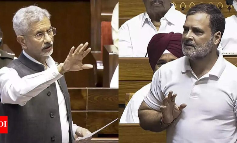 नई दिल्ली: बुधवार को राज्यसभा में एक उग्र संबोधन में, विदेश मंत्री S Jaishankar कांग्रेस नेता पर एक चुभने, पतले घूंघट वाले हमले का शुभारंभ किया Rahul Gandhi। जायशंकर ने उन्हें “चीन-गुरु” की ब्रांडिंग की और उन पर बीजिंग के अपने ज्ञान को “ओलंपिक आमंत्रित और चीनी राजनयिकों से निजी ट्यूशन” के माध्यम से प्राप्त करने का आरोप लगाया।विदेश मंत्री ने चीन की अपनी हालिया यात्रा का बचाव करते हुए, आरोपों पर वापस मारा कि उन्होंने चीन के मोर्चे पर पर्याप्त नहीं किया है, उन्होंने कहा कि उन्होंने 2008 के बीजिंग ओलंपिक के दौरान “चीन ट्यूशन” लेने वालों के विपरीत “गुप्त बैठकें या सौदे” नहीं रखे। उन्होंने कहा, “कुछ लोगों को वहां ओलंपिक में जाकर चीन का ज्ञान मिला। लेकिन, वे किससे मिले? वे न केवल चीनी से मिले, बल्कि अन्य भी थे,” उन्होंने कहा, राहुल और सोनिया गांधी में एक स्पष्ट जिब में, जिन्होंने इस कार्यक्रम में विशेष निमंत्रण के रूप में भाग लिया था। जयशंकर ने कहा, “लेकिन अब ‘चीन-गुरस’ हैं और एक सर मेरे पास बैठा है, जिसका चीन के लिए स्नेह इतना महान है कि उन्होंने भारत और चीन के बीच एक सौदा किया-‘चिंधिया’,” जयशंकर ने कांग्रेस नेता जयरम रमेश द्वारा गढ़े गए एक शब्द का जिक्र करते हुए कहा। मंत्री ने कहा कि उन्होंने विदेश सेवा में 41 साल बिताए थे और चीन में भारत के सबसे लंबे समय तक सेवा करने वाले राजदूत के रूप में कार्य किया था, लेकिन फिर भी बीजिंग पर नरम होने के विरोध के आरोपों का सामना करना पड़ा। उन्होंने कहा, “चीन पर मेरी ओर से कुछ कमियां हो सकती हैं, क्योंकि मुझे चीन ओलंपिक में जाकर चीन शिक्षण नहीं मिला, क्योंकि मुझे आमंत्रित नहीं किया गया था और एक विशेष व्यक्ति नहीं था,” उन्होंने तेजी से टिप्पणी की।Jaishankar flays Rahul on China-Pak nexus उन्होंने आरोप लगाया कि 1960 के दशक में पाकिस्तान और चीन के बीच सहयोग शुरू हो गया था, लेकिन पिछली भारतीय सरकारें निर्णायक रूप से कार्य करने में विफल रही। “यह ‘चीन गुरु’ कहता है कि चीन और पाकिस्तान बहुत करीब आ गए हैं, जो वास्तविकता है। उन्होंने कहा कि जब हम पोक छोड़ते हैं, तो वे एक साथ आए। जयशंकर ने राष्ट्रीय सुरक्षा पर विपक्ष की चिंताओं को खारिज कर दिया और हाउस ऑफ चाइना के श्रीलंका के हैम्बेंटोटा बंदरगाह के नियंत्रण को याद दिलाया, एक रणनीतिक नुकसान, उन्होंने कहा, जो यूपीए सरकार के कार्यकाल के दौरान हुआ था। “चीन-गुरु हमें चीन पर व्याख्यान देता है, उन्हें समझना चाहिए कि यह उनके युग के दौरान हुआ था,” उन्होंने कहा। अपनी हाल की चीन यात्रा पर, जयशंकर ने कहा, “मैंने जो कुछ भी किया और चर्चा की कि सार्वजनिक रूप से खुला था। मैंने आतंकवाद पर चर्चा की, मैंने डी-एस्केलेशन पर चर्चा की और मैंने व्यापार पर प्रतिबंधों पर चर्चा की, जो चीन न