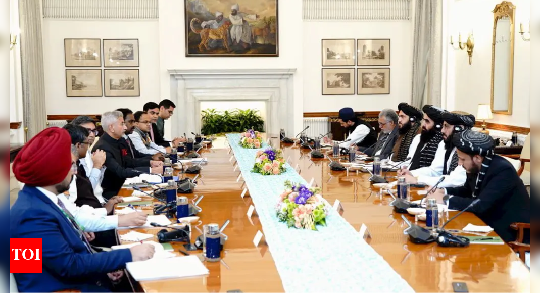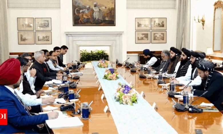 नई दिल्ली: की ऐतिहासिक यात्रा तालिबान विदेश मंत्री अमीर खान मुत्ताकी शुक्रवार को भारत आए, जहां भारत ने घोषणा की कि वह काबुल में अपने तकनीकी मिशन को दूतावास के स्तर तक उन्नत करेगा, जबकि अफगानिस्तान के साथ संबंधों को आगे बढ़ाने के लिए कई परियोजनाओं और मानवीय संकेतों की घोषणा की। विदेश मंत्री S Jaishankar उन्होंने दूतावास को औपचारिक रूप से फिर से खोलने की घोषणा करते हुए कहा कि दोनों पक्षों के बीच सहयोग अफगानिस्तान के राष्ट्रीय विकास के साथ-साथ क्षेत्रीय स्थिरता और लचीलेपन में योगदान देता है।मुत्ताकी ने बैठक के बाद कहा कि भारत भी अफगान राजनयिकों को अपने यहां लेने पर सहमत हो गया है, हालांकि राजदूत स्तर पर नहीं। हालांकि काबुल में शासन की औपचारिक मान्यता नहीं है, फिर भी उन्नयन राजनयिक संबंधों और आर्थिक सहयोग को और गहरा करने में बाधाओं को दूर करने के लिए चल रहे प्रयासों के लिए एक महत्वपूर्ण बढ़ावा है। 2021 में तालिबान की काबुल में वापसी के बाद भारत ने काबुल में अपना दूतावास बंद कर दिया, लेकिन जून 2022 में, सरकार ने मुख्य रूप से मानवीय सहायता के वितरण की निगरानी के लिए दूतावास में एक तकनीकी टीम तैनात की।बैठक में, जयशंकर ने अफगानिस्तान में संभावित संबंधों वाले पाकिस्तान स्थित आतंकवादी समूहों की गतिविधियों सहित सीमा पार आतंकवाद के बारे में भारत की चिंताओं को रेखांकित किया, और मुत्ताकी ने उन्हें आश्वासन दिया कि तालिबान किसी भी समूह को दूसरों के खिलाफ देश का उपयोग करने की अनुमति नहीं देगा। पाकिस्तान का नाम लिए बिना, दोनों पक्षों ने एक संयुक्त बयान में क्षेत्रीय देशों से उत्पन्न होने वाले सभी आतंकवादी कृत्यों की स्पष्ट रूप से निंदा की, जबकि क्षेत्र में शांति, स्थिरता और आपसी विश्वास को बढ़ावा देने के महत्व को रेखांकित किया।तहरीक-ए-तालिबान की गतिविधियों पर पाकिस्तान के साथ तालिबान के संबंधों में खटास आने पर जयशंकर ने जोर देकर कहा कि भारत अफगानिस्तान की संप्रभुता, क्षेत्रीय अखंडता और स्वतंत्रता के लिए पूरी तरह से प्रतिबद्ध है और मुत्ताकी से भी उन्हें यही आश्वासन मिला।पाक का नाम लिए बिना भारत और तालिबान ने सीमा पार आतंक की निंदा कीपाकिस्तान का नाम लिए बिना, दोनों पक्षों ने एक संयुक्त बयान में क्षेत्रीय देशों से उत्पन्न होने वाले सभी आतंकवादी कृत्यों की स्पष्ट रूप से निंदा की, जबकि क्षेत्र में शांति, स्थिरता और आपसी विश्वास को बढ़ावा देने के महत्व को रेखांकित किया। तहरीक-ए-तालिबान की गतिविधियों पर पाकिस्तान के साथ तालिबान के संबंधों में खटास आने के बीच, जयशंकर ने इस बात पर भी जोर दिया कि भारत अफगानिस्तान की संप्रभुता, क्षेत्रीय अखंडता और स्वतंत्रता के लिए पूरी तरह से प्रतिबद्ध है और मुत्