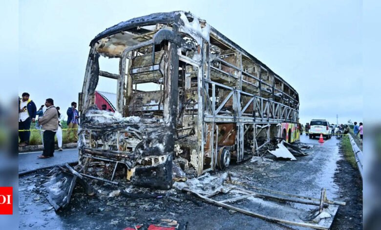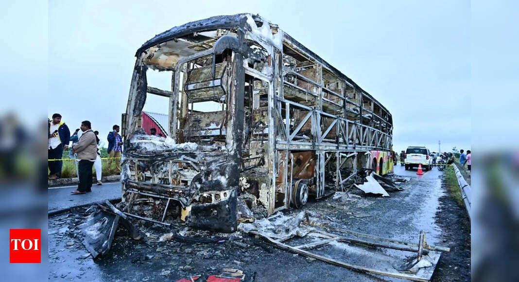 नई दिल्ली: आग ने एक यात्री बस को अपनी चपेट में ले लिया आंध्र प्रदेश पुलिस के अनुसार, शुक्रवार तड़के चिंगारी तब भड़की जब एक मोटरसाइकिल वाहन के नीचे आ गई और घसीटी गई, जिससे आग लग गई।आग ने 20 लोगों की जान ले ली – बस में सवार 19 यात्री और मोटरसाइकिल सवार।कुरनूल जिले के पुलिस अधीक्षक कार्यालय – जहां दुर्घटना हुई – ने एक प्रेस विज्ञप्ति में कहा, “फोरेंसिक विश्लेषण, पोस्टमार्टम रिपोर्ट, दृश्य पुनर्निर्माण और गवाहों के बयानों के आधार पर, बस में आग लगने की घटनाओं का क्रम स्थापित किया गया है।” जांचकर्ताओं ने पाया कि बस चालक, मिरयाला लक्ष्मैया, उसी दिशा में जा रही एक मोटरसाइकिल से टकरा गई थी। मोटरसाइकिल चालक बुच्चालु शिव शंकर की मौके पर ही मौत हो गई।विज्ञप्ति में कहा गया है, “बाइक को बस के नीचे घसीटा गया था और इससे निकली चिंगारी के कारण आग लग गई। बस की बैटरियां, बस में ज्वलनशील सामान की मौजूदगी और सेल फोन सहित कार्गो ने आग को बढ़ा दिया, जिससे यह दुखद घटना हुई।”इसमें कहा गया है कि 18 मृतकों के परिवारों से संपर्क किया गया है और डीएनए मिलान और शव सौंपने की प्रक्रिया फिलहाल चल रही है। दुर्घटना के समय बस 43 लोगों को लेकर हैदराबाद से बेंगलुरु जा रही थी।जीवित बचे लोगों में से एक एन रमेश की शिकायत के आधार पर, बस के दोनों ड्राइवरों के खिलाफ कथित लापरवाही और तेज गति से गाड़ी चलाने का मामला दर्ज किया गया है।