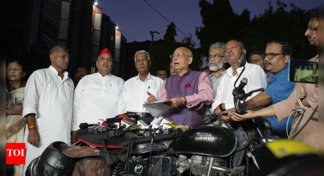 नई दिल्ली: 11 विपक्षी दलों का एक प्रतिनिधिमंडल मिला निर्वाचन आयोग बुधवार को और आगामी विधानसभा चुनावों से कुछ महीनों पहले बिहार में चुनावी रोल के चल रहे गहन संशोधन पर आपत्ति जताई।प्रतिनिधिमंडल ने अभ्यास को “वोटबंदी” के रूप में डब किया और दावा किया कि यह राज्य में लोकतंत्र को “खतरे के तहत” डाल देगा।पोल बॉडी के साथ बैठक के बाद मीडिया को ब्रीफ करते हुए, कांग्रेस के वरिष्ठ नेता अभिषेक मनु सिंहवी ने कहा कि संशोधन के समय ने गंभीर चिंताओं को बढ़ाया।“इस अभ्यास में बिहार में 7.75 करोड़ से अधिक मतदाताओं को सत्यापित करना शामिल है। विधानसभा चुनावों के लिए बमुश्किल 2-3 महीने के साथ, इस तरह के बड़े पैमाने पर व्यायाम न तो व्यावहारिक है और न ही निष्पक्ष है,” उन्होंने कहा, इसे मुफ्त और निष्पक्ष चुनावों के लिए आवश्यक स्तर के खेल के मैदान का उल्लंघन कहा जाता है।सिंहवी, आरजेडी सांसद मनोज झा, सीपीएम के दीपांकर भट्टाचार्य, बिहार कांग्रेस के प्रमुख राजेश कुमार और अन्य लोगों ने कहा कि प्रतिनिधिमंडल ने भी इस तरह की बैठकों में पार्टी प्रतिनिधियों की संख्या को प्रतिबंधित करते हुए ईसी के नए नियम को मजबूत अस्वीकृति व्यक्त की। उन्होंने कहा कि जेराम रमेश और पवन खेरा जैसे वरिष्ठ नेताओं को प्रवेश से वंचित कर दिया गया और बाहर इंतजार करने के लिए बनाया गया।सिंहवी ने कहा, “इस तरह की सीमा जो आयोग से मिल सकती है – पार्टी अध्यक्ष सहित दो लोगों पर इसे कैपिंग करना – अभूतपूर्व और मनमाना है।”‘Votebandi’अभ्यास को ‘वोटबंदी’ के रूप में बुलाकर, भट्टाचार्य ने दावा किया कि आयोग ने स्वीकार किया कि बिहार के 20% मतदाता राज्य के बाहर रहते हैं, जिसका प्रभावी रूप से मतलब है कि वे वोट देने का अपना अधिकार खो सकते हैं।यह बिहार के लिए ‘वोटबंदी’ से कम नहीं है, “उन्होंने कहा, व्यायाम की तुलना में विमुद्रीकरण, या ‘नोटबंदी’, 2016 में किया गया था।“चुनाव आयोग को यह समझाने में हमारी ओर से विफलता प्रतीत होती है कि पहचान दस्तावेजों को प्रस्तुत करने के लिए एक महीने लाखों मतदाताओं के लिए पर्याप्त नहीं है। बिहार में लोकतंत्र खतरे में है। एक प्रमुख लोगों का आंदोलन अब आवश्यक है, “उन्होंने कहा।बैठक ‘सौहार्दपूर्ण नहीं’आरजेडी नेता झा ने कहा कि पोल बॉडी के साथ बैठक “सौहार्दपूर्ण नहीं थी।”उन्होंने कहा, “हमने बिहार में गरीब, पिछड़े वर्गों के बारे में अपनी चिंता व्यक्त की। हमने चुनाव आयोग से चिंता की कमी देखी,” उन्होंने कहा।“क्या यह लोगों को अलग करने का प्रयास है? 20 प्रतिशत बिहारिस जो राज्य के बाहर पलायन करते हैं, लक्ष्य हैं। यदि एक अभ्यास का उद्देश्य समावेश के बजाय बहिष्करण हो जाता है, तो हमें क्या करना चाहिए? क्या आप बिहार में संदिग्ध मतदाताओं को खोजने की कोशि