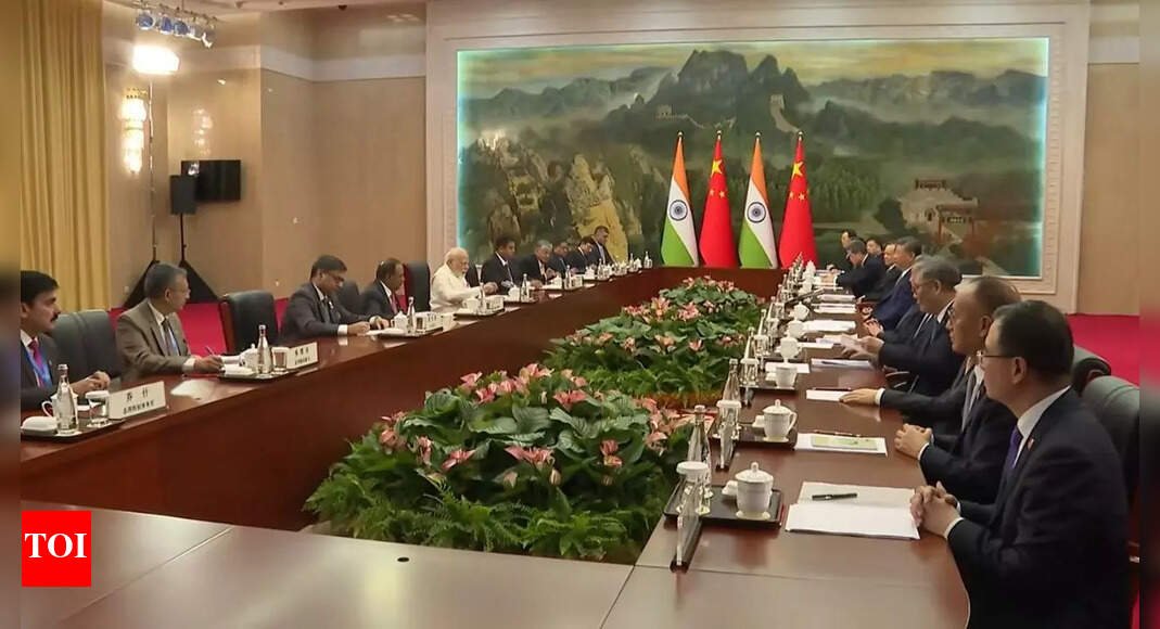 नई दिल्ली: प्रधानमंत्री Narendra Modi रविवार को कहा गया कि भारत और चीन के बीच सहयोग अपने चीनी समकक्ष, राष्ट्रपति के साथ द्विपक्षीय वार्ता के दौरान “संपूर्ण मानवता के कल्याण” के लिए मार्ग प्रशस्त करेगा झी जिनपिंग। महत्वपूर्ण वार्ता के दौरान, पीएम के तरीके यह कहा गया है कि भारत “आपसी विश्वास, सम्मान और संवेदनशीलता के आधार पर” चीन के साथ संबंधों को आगे बढ़ाने के लिए प्रतिबद्ध है। ” सभी की निगाहें पीएम मोदी पर थीं, जो सात साल के अंतराल के बाद शनिवार शाम को बंदरगाह शहर तियानजिन में उतरे थे। वह जापान की अपनी दो दिवसीय यात्रा का समापन करने के बाद तियानजिन के बिनाहाई अंतर्राष्ट्रीय हवाई अड्डे पर पहुंचे।
