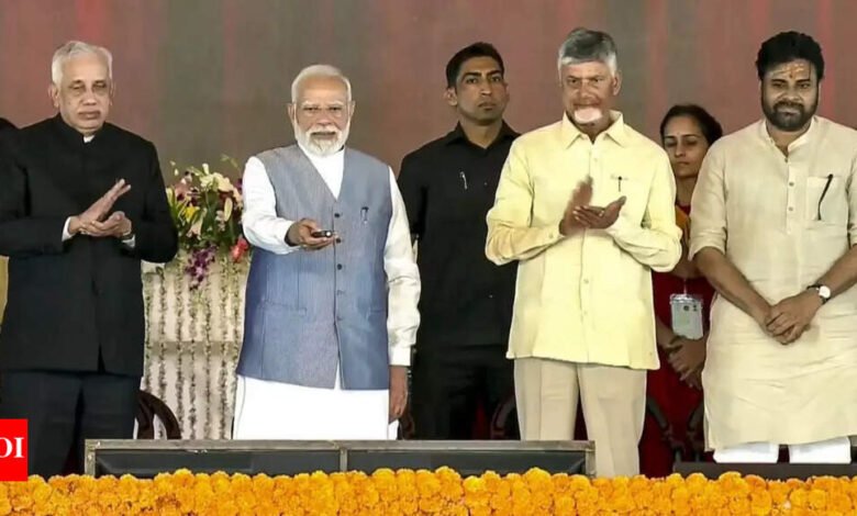 नई दिल्ली: प्रधानमंत्री Narendra Modi गुरुवार को 13,430 करोड़ रुपये की कई विकास परियोजनाओं का उद्घाटन और शिलान्यास किया आंध्र प्रदेशयह घोषणा करते हुए कि राज्य मुख्यमंत्री के तहत त्वरित प्रगति के एक नए चरण में प्रवेश कर चुका है एन चंद्रबाबू नायडू और उपमुख्यमंत्री पवन कल्याण.कुरनूल में एक रैली में बोलते हुए, पीएम मोदी आंध्र प्रदेश को “आत्मसम्मान, संस्कृति और नवाचार की भूमि” के रूप में वर्णित किया और कहा कि राज्य विज्ञान और प्रौद्योगिकी के लिए एक प्रमुख केंद्र के रूप में उभर रहा है। उन्होंने कहा, “अब आंध्र के पास सीएम नायडू और डिप्टी सीएम पवन कल्याण के रूप में दूरदर्शी नेतृत्व है।” उन्होंने कहा कि पिछले 16 महीनों में, “आंध्र प्रदेश में विकास की गाड़ी बहुत तेजी से आगे बढ़ी है।”पीएम मोदी ने कहा कि आंध्र प्रदेश आत्मनिर्भर भारत की यात्रा में एक प्रमुख स्तंभ बन रहा है। “आंध्र प्रदेश आत्मनिर्भर भारत की सफलता का एक प्रमुख केंद्र बन रहा है। कांग्रेस सरकारों ने आंध्र प्रदेश की क्षमताओं को नजरअंदाज करके पूरे देश को नुकसान पहुंचाया है। जो राज्य पूरे देश को आगे बढ़ा सकता था, वह खुद अपने विकास के लिए संघर्ष कर रहा है। मुझे खुशी है कि आंध्र प्रदेश की छवि बदल गई है।” एनडीए सरकार,” उन्होंने कहा।बिजली और ऊर्जा के क्षेत्र में भारत की प्रगति को याद करते हुए, प्रधान मंत्री ने कहा, “ग्यारह साल पहले, जब कांग्रेस सत्ता में थी, औसत प्रति व्यक्ति बिजली की खपत 1,000 यूनिट से कम थी। आज, यह बढ़कर 1,400 यूनिट हो गई है, और आंध्र प्रदेश इस ऊर्जा क्रांति में महत्वपूर्ण भूमिका निभा रहा है।”पीएम मोदी ने निम्मलुरु में एडवांस्ड नाइट विजन फैक्ट्री के उद्घाटन की घोषणा की और इसे रक्षा आत्मनिर्भरता की दिशा में एक बड़ा कदम बताया। “यह फैक्ट्री भारत की नाइट विजन डिवाइस, मिसाइल सेंसर और ड्रोन गार्ड सिस्टम बनाने की क्षमता को बढ़ाएगी। यहां निर्मित उपकरण भारत के रक्षा निर्यात को भी बढ़ाएंगे, और हम पहले ही भारत में निर्मित उत्पादों की शक्ति देख चुके हैं। ऑपरेशन सिन्दूर“प्रधान मंत्री ने कहा।राज्य की तकनीकी क्षमता पर प्रकाश डालते हुए उन्होंने कहा, “मुझे खुशी है कि आंध्र प्रदेश सरकार ने कुरनूल को भारत का ड्रोन हब बनाने का संकल्प लिया है। ड्रोन उद्योग कुरनूल और आंध्र में भविष्य की तकनीक से संबंधित कई नए क्षेत्रों के विकास को बढ़ावा देगा। मैंने अभी ऑपरेशन सिन्दूर में ड्रोन की प्रतिभा का उल्लेख किया है, जिसने दुनिया को आश्चर्यचकित कर दिया है। भविष्य में, कुरनूल ड्रोन क्षेत्र में एक राष्ट्रीय शक्ति बनने की ओर अग्रसर है।पीएम मोदी ने ये भी कहा गूगल आंध्र प्रदेश में भारत का पहला आर्टिफिशियल इंटेलिजेंस (एआई) हब स्थापित किया जाएगा, जिसमें विश