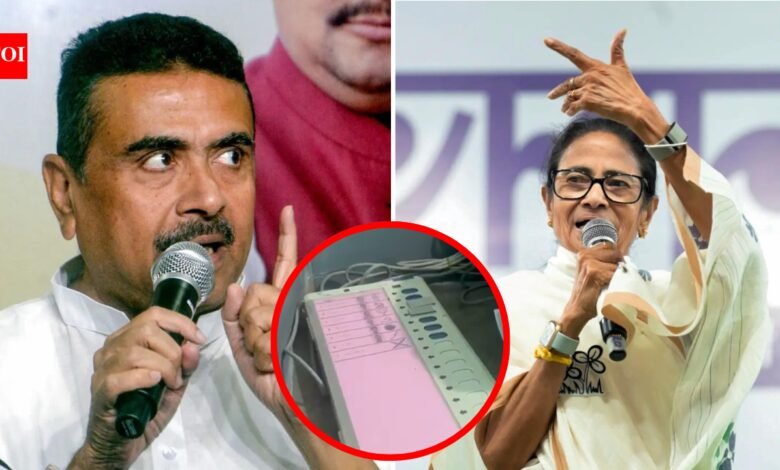 नई दिल्ली: भाजपा ने बुधवार को पश्चिम बंगाल विधानसभा चुनाव के दूसरे चरण के दौरान अनियमितताओं का आरोप लगाया और दावा किया कि डायमंड हार्बर निर्वाचन क्षेत्र के तहत फाल्टा के कई मतदान केंद्रों पर इलेक्ट्रॉनिक वोटिंग मशीनों (ईवीएम) पर उसकी पार्टी का चुनाव चिन्ह चिपका दिया गया था।पश्चिम बंगाल विधानसभा चुनाव – लाइव अपडेट का पालन करेंविपक्ष के नेता और भबनीपुर और नंदीग्राम से भाजपा उम्मीदवार सुवेंदु अधिकारी ने कहा कि उन्होंने कथित कदाचार के बारे में केंद्रीय गृह मंत्री अमित शाह और भाजपा नेता भूपेन्द्र यादव सहित वरिष्ठ नेताओं से बात की है। उन्होंने कहा, “चुनाव आयोग ने संज्ञान लिया है। अगर वह इस तरह से काम करता है, तो जो आवश्यक होगा वह किया जाएगा।” उन्होंने कहा कि उस समय केवल 35 प्रतिशत मतदान हुआ था।