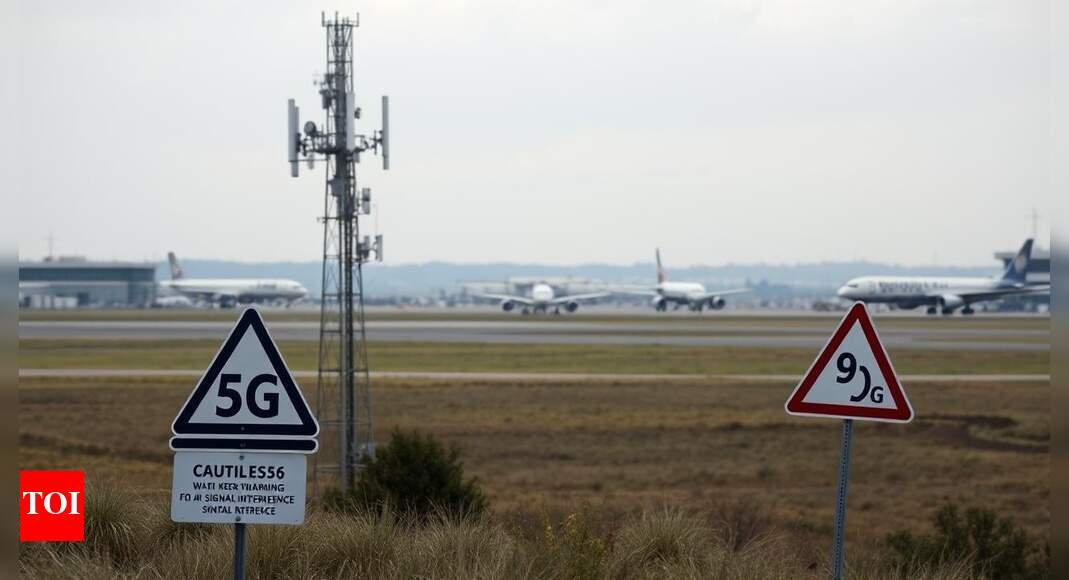 नई दिल्ली: सरकार ने मंगलवार को दूरसंचार सेवा प्रदाताओं (टीएसपी) को “सी बैंड 5 जी अंतर्राष्ट्रीय मोबाइल टेलीकॉम स्टेशनों की स्थापना और संचालन के लिए हवाई अड्डों में बहिष्करण क्षेत्रों को लागू करने का निर्देश दिया” 5 जी संकेतों से विमान प्रणालियों के लिए संभावित भयावह हस्तक्षेप से बचने के लिए – जिसमें रेडियो अल्टिमेटर्स भी शामिल हैं, जो कि एक विमान की ऊंचाई से नीचे की ओर एक विमान की ऊंचाई को मापता है। इसका अनिवार्य रूप से मतलब है कि टीएसपी को विमान प्रणालियों के साथ हस्तक्षेप करने वाले स्ट्रिंग सिग्नल से बचने के लिए रनवे के पास कम पावर 5 जी एंटीना स्थापित करना होगा।यूनियन एविएशन मंत्रालय और सिविल एविएशन के महानिदेशालय (DGCA) ने अंतिम नवंबर को सुरक्षित लैंडिंग सुनिश्चित करने और ऑफ देने के लिए संशोधित बहिष्करण क्षेत्रों का सुझाव दिया था। “यह मामला दूरसंचार विभाग (डीओटी), नागरिक उड्डयन (मंत्रालय या MOCA) और DGCA के विचार -विमर्श के अधीन रहा है। मंगलवार को जारी किए गए एक डीओटी ऑर्डर ने कहा कि संशोधित बहिष्करण क्षेत्रों (द्वारा) MOCA को एक अंतरिम उपाय के रूप में सहमति दी गई है, जब तक कि रेडियो अल्टीमेटर्स के उन्नयन या रेट्रोफिटिंग तक एक अंतरिम उपाय के रूप में सहमति व्यक्त की गई है।