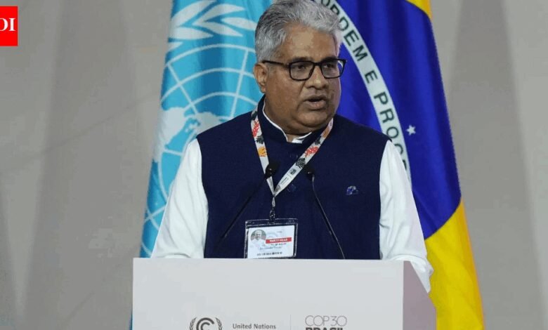 नई दिल्ली: अपनी नई 2035 जलवायु कार्रवाई प्रतिज्ञाओं को पूरा करने से पहले अमीर देशों पर दबाव कम करते हुए, भारत ने विकसित देशों से 2050 से पहले उनके द्वारा ‘शुद्ध शून्य’ उत्सर्जन तक पहुंचने की आवश्यकता को रेखांकित करते हुए, अपनी स्वयं की बड़ी जलवायु महत्वाकांक्षा का प्रदर्शन करने और अपनी प्रतिबद्धताओं का सम्मान करने का आग्रह किया है।भारत अगले महीने संयुक्त राष्ट्र निकाय को अपनी नई जलवायु कार्रवाई प्रतिज्ञाएँ – राष्ट्रीय स्तर पर निर्धारित योगदान (एनडीसी) प्रस्तुत करेगा। अब तक, अमेरिका, चीन और यूरोपीय संघ सहित 100 से अधिक देशों ने पहले ही कई हितधारकों के साथ अपने एनडीसी जमा कर दिए हैं, और भारत से एक महत्वाकांक्षी शमन लक्ष्य देने के लिए कहा है।पर्यावरण मंत्री ने कहा, “विकसित देशों को वर्तमान लक्ष्य तिथियों से बहुत पहले ‘शुद्ध शून्य’ तक पहुंचना होगा, पेरिस समझौते के अनुच्छेद 9.1 (विकासशील देशों की सहायता के लिए विकसित देशों द्वारा जलवायु वित्त प्रदान करना) के तहत अपने दायित्वों को पूरा करना होगा और खरबों डॉलर में अनुमानित नया, अतिरिक्त और रियायती जलवायु वित्त प्रदान करना होगा।” Bhupender Yadav सोमवार को ब्राजील के बेलेम में चल रहे संयुक्त राष्ट्र जलवायु सम्मेलन (COP30) में भारत का राष्ट्रीय वक्तव्य देते हुए।यादव ने भारत की निरंतर स्थिति को स्पष्ट किया जहां वह चाहता है कि अमीर देश अपनी जलवायु कार्रवाई में महत्वाकांक्षी हों क्योंकि ऐतिहासिक उत्सर्जक होने के नाते वे जलवायु परिवर्तन के लिए जिम्मेदार हैं जबकि वैश्विक दक्षिण के देश अधिक पीड़ित हैं।“खरबों डॉलर” पर उनकी टिप्पणी पिछले साल बाकू, अजरबैजान में COP29 के दौरान गंभीर चिंताओं के बीच विकासशील देशों की सहायता के लिए अमीर देशों द्वारा 2035 तक सालाना 1.3 ट्रिलियन डॉलर जुटाने की ग्लोबल साउथ की मांग को दर्शाती है, जो कि सहमति के बजाय (2035 तक सालाना 300 बिलियन डॉलर) थी।इस अवसर पर, मंत्री ने अमीर देशों से काम पूरा करने के लिए कहते हुए कहा कि कैसे भारत ने पहले ही सफलतापूर्वक प्रदर्शित कर दिया है कि विकास और पर्यावरण प्रबंधन एक साथ आगे बढ़ सकते हैं, और अपने सभी जलवायु कार्रवाई वादों को बहुत पहले ही पूरा कर लिया है।“2005 के बाद से भारत की उत्सर्जन तीव्रता में 36% से अधिक की गिरावट आई है। भारत की गैर-जीवाश्म ईंधन आधारित ऊर्जा क्षमता, वर्तमान में लगभग 256 गीगावॉट है, जो इसकी कुल विद्युत स्थापित क्षमता के आधे से अधिक है – एक एनडीसी लक्ष्य जो निर्धारित समय से पांच साल पहले हासिल किया गया है,” यादव ने कहा।उन्होंने यह भी कहा कि देश के नए लॉन्च किए गए परमाणु मिशन और ग्रीन हाइड्रोजन मिशन ने 2070 तक ‘नेट जीरो’ की दिशा में अपनी यात्रा को और तेज कर दिया है।इस बीच, ब्राज़ीलियाई प्रेसी