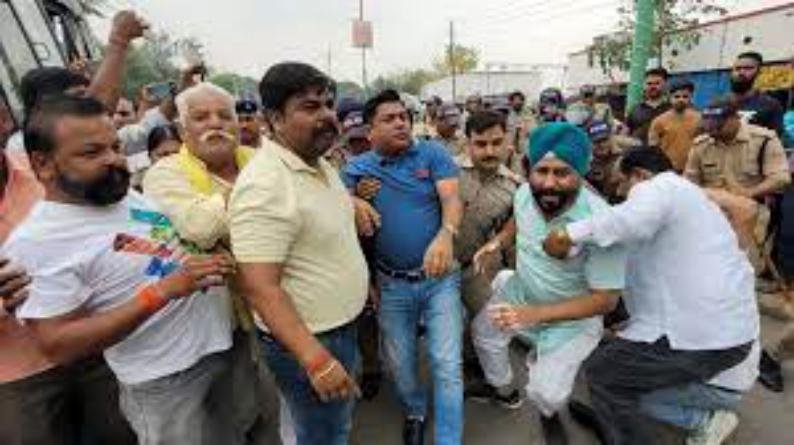 पुलिस ने उन्हें रोका तो वह सड़क पर ही धरने पर बैठ गए। जिस पर पुलिस ने उनको बल प्रयोग करते हुए गिरफ्तार कर वाहन में भर कर कलकत्ता फार्म चौकी ले गए। गिरफ्तार किए लोगों में पालिकाध्यक्ष दर्शन कोली, विधायक प्रतिनिधि गौरव बेहड़, राजेश प्रताप सिंह, गुलशन सिंधी, जगरूप सिंह गोल्डी शामिल हैं।