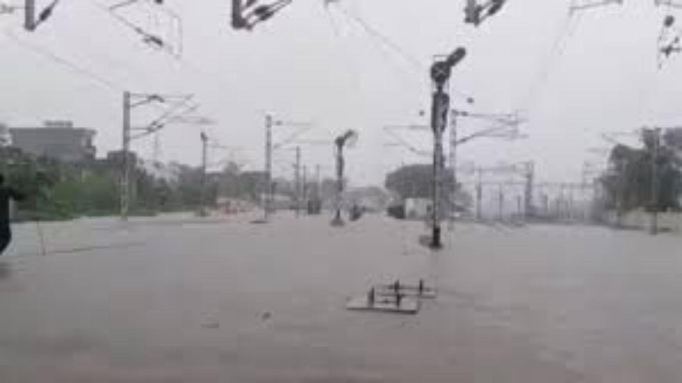 लालकुआं रेलवे स्टेशन में भारी जलभराव; पटरियां पानी में डूबी