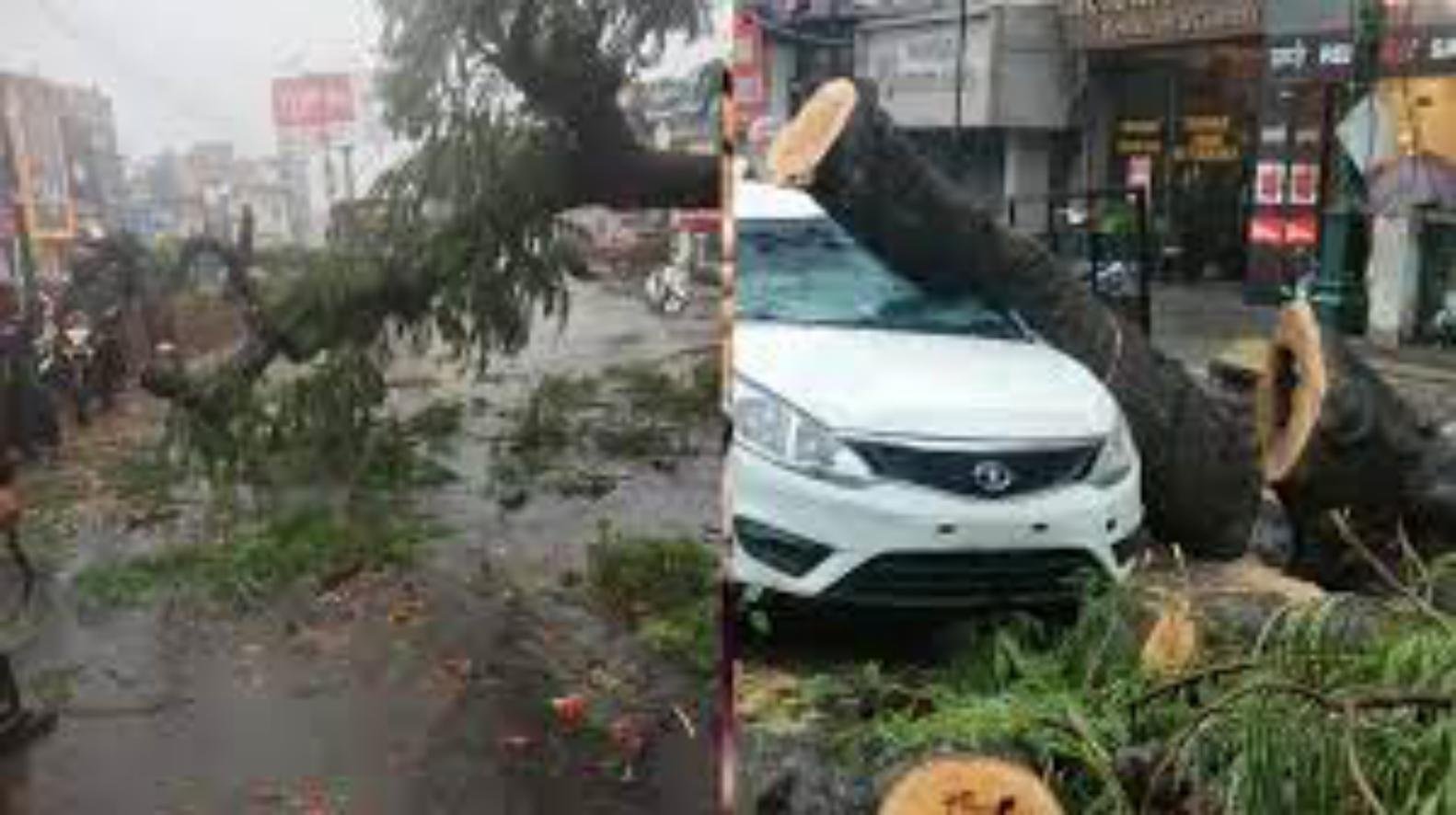 इसके बाद सुबह करीब 9 बजे गांधी पार्क के निकट कार के ऊपर भारी भरकम पेड़ गिर गया। गनीमत रही कि कार के अंदर कोई नहीं था। घटना के बाद दोनों तरफ जाम लग गया। फायर ब्रिगेड की टीम ने पेड़ काटकर यातायात सुचारु करवाया। दूसरी ओर सुबह से ही चल रही बारिश के कारण चारों ओर से यातायात जाम हो गया। जगह-जगह सड़कों पर पानी भरने के कारण वाहन आगे नहीं बढ़ पाए।