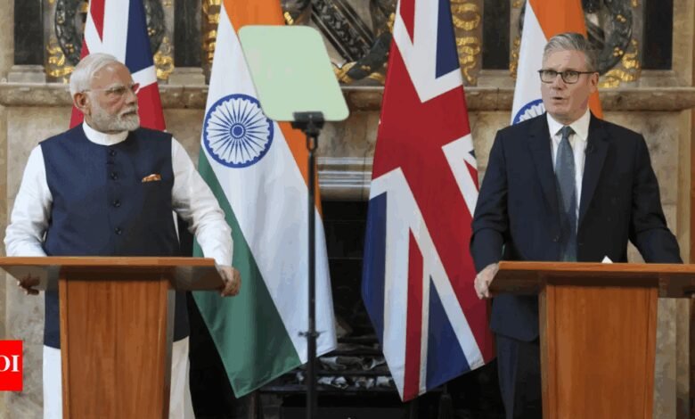 लंदन/नई दिल्ली: बातचीत शुरू करने के तीन साल से अधिक समय बाद, और वैश्विक व्यापार पारिस्थितिकी तंत्र में गहन अनिश्चितता के बीच, भारत और यूके ने आखिरकार एक व्यापक आर्थिक और व्यापार समझौते पर हस्ताक्षर किए, जो दोनों पक्षों पर कर्तव्यों को कम करता है। यह निवेशकों और व्यावसायिक कर्मचारियों के लिए वीजा प्राप्त करने के लिए अधिक अनुमानित बनाता है, और 2030 तक वर्तमान $ 56 बिलियन से डबल द्विपक्षीय व्यापार के प्रयासों के हिस्से के रूप में दोनों देशों में ऑडिट और लेखा फर्मों के लिए पहुंच की अनुमति देता है।उपभोक्ता ब्रिटिश-निर्मित कारों, सौंदर्य प्रसाधन, चिकित्सा उपकरणों और स्कॉच के लिए सस्ती देख सकते हैं, क्योंकि सरकार ने औसत टैरिफ को 15% से 3% तक स्लैश करने के लिए सहमति व्यक्त की है। शून्य ड्यूटी आयात सूची में चांदी भी शामिल है – यूके की निर्यात टोकरी में सबसे बड़ी वस्तु ($ 2.1 बिलियन पिछले वित्त वर्ष)। लेकिन सभी बदलाव रातोंरात नहीं होंगे, 10 वर्षों में कुछ ड्यूटी कटौती की योजना बनाई गई, जिससे भारतीय उद्योग को समायोजित करने की अनुमति मिलती है।बदले में, सरकार को 99% उत्पाद लाइनों पर शून्य ड्यूटी आयात की अनुमति देने के लिए यूके मिला। “यह केवल एक आर्थिक साझेदारी से अधिक है; यह साझा समृद्धि के लिए एक खाका भी है। यह भारतीय वस्त्रों, जूते, रत्नों और आभूषणों, समुद्री भोजन, और इंजीनियरिंग के सामान के लिए यूके में बढ़ी हुई बाजार पहुंच का मार्ग प्रशस्त करता है। यह भारत के कृषि उपज और प्रसंस्कृत खाद्य उद्योग के लिए नए अवसरों को भी अनलॉक करेगा। पीएम के तरीके कहा।हालांकि, सरकार ने कई कृषि उत्पादों जैसे कि जई, सेब, खाद्य तेल और संवेदनशील बीजों के साथ -साथ टैरिफ कमी के दायरे से बाहर डेयरी को रखने में कामयाब रहा है।“हम एक नए और अधिक खतरनाक वैश्विक युग के माध्यम से रह रहे हैं … हमारा मानना है कि मजबूत साझेदारी का निर्माण सबसे अच्छी प्रतिक्रिया है … आज हम भारत के साथ अपने नए सौदे में इस दृष्टिकोण की पुष्टि कर रहे हैं – यूरोपीय संघ छोड़ने के बाद से ब्रिटेन के लिए सबसे बड़ा और सबसे अधिक आर्थिक रूप से महत्वपूर्ण व्यापार सौदा।”ट्रम्प द्वारा बनाए गए टैरिफ उथल -पुथल के बीच यूके संधि आता है भारत-यूके व्यापार समझौते ने 6 मई को घोषणा की, लेकिन ब्रिटिश पीएम के आधिकारिक देश निवास के बाद, चेकर्स में औपचारिक रूप से, अमेरिकी राष्ट्रपति डोनाल्ड ट्रम्प के कदमों के कारण टैरिफ उथल-पुथल के बीच आया, जिससे देशों को न केवल वाशिंगटन के लिए दौड़ने के लिए सौदों पर हमला करने के लिए प्रेरित किया, बल्कि अन्य संधियों पर बातचीत भी बढ़ी। भारत यूरोपीय मुक्त व्यापार एसोसिएशन के साथ संधि को रोल आउट करने के लिए तैयार है, जिसमें स्विट्जरलैंड, नॉर्वे, आइसलैं