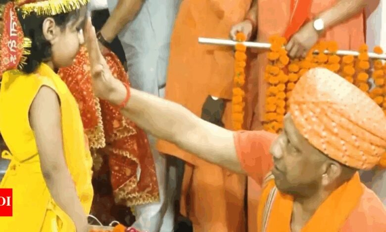 UP CM Yogi performs Kanya Pujan at Gorakhnath Temple on Maha Navami