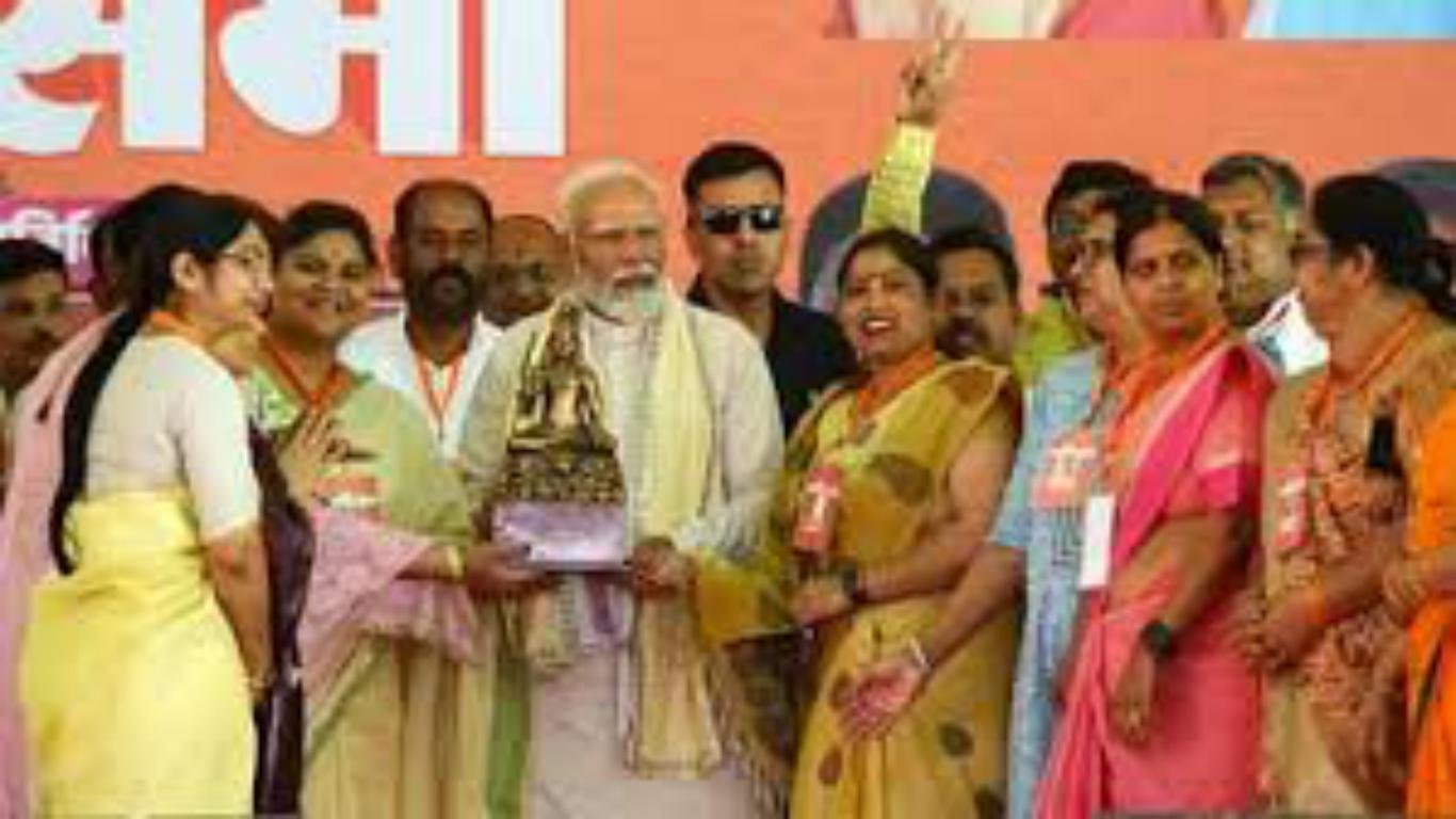 महिलाओं ने महादेव की प्रतिमा देकर किया पीएम मोदी का स्वागत